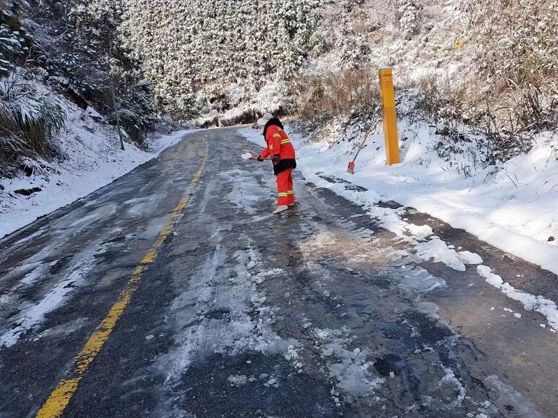 2023年瑞金市S451、S543線日常養(yǎng)護(hù)市場化項(xiàng)目K92-K97段道路結(jié)冰、通行困難,項(xiàng)目部采取“機(jī)械為主,人員為輔”的作業(yè)方式實(shí)施道路封閉管制并采用撒鹽化冰、鏟車連夜清除路面積雪等措施,重點(diǎn)針對背陰路段、彎道陡坡、橋涵進(jìn)出口等重點(diǎn)結(jié)構(gòu)物進(jìn)行動(dòng)態(tài)除雪,堅(jiān)決做到“隨降隨清,雪停路暢”。